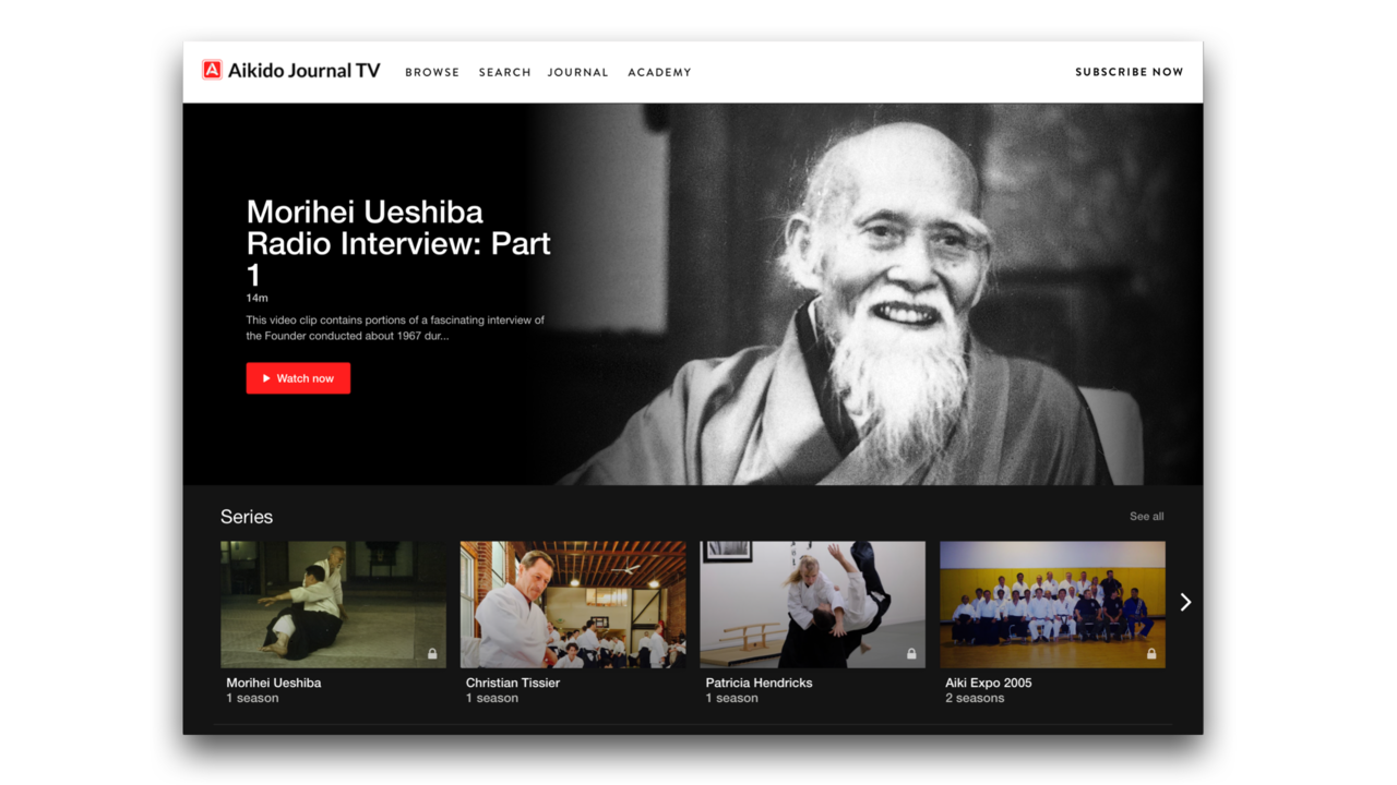 An annual subscription to Aikido Journal TV, the world's largest aikido knowledge base and video collection.